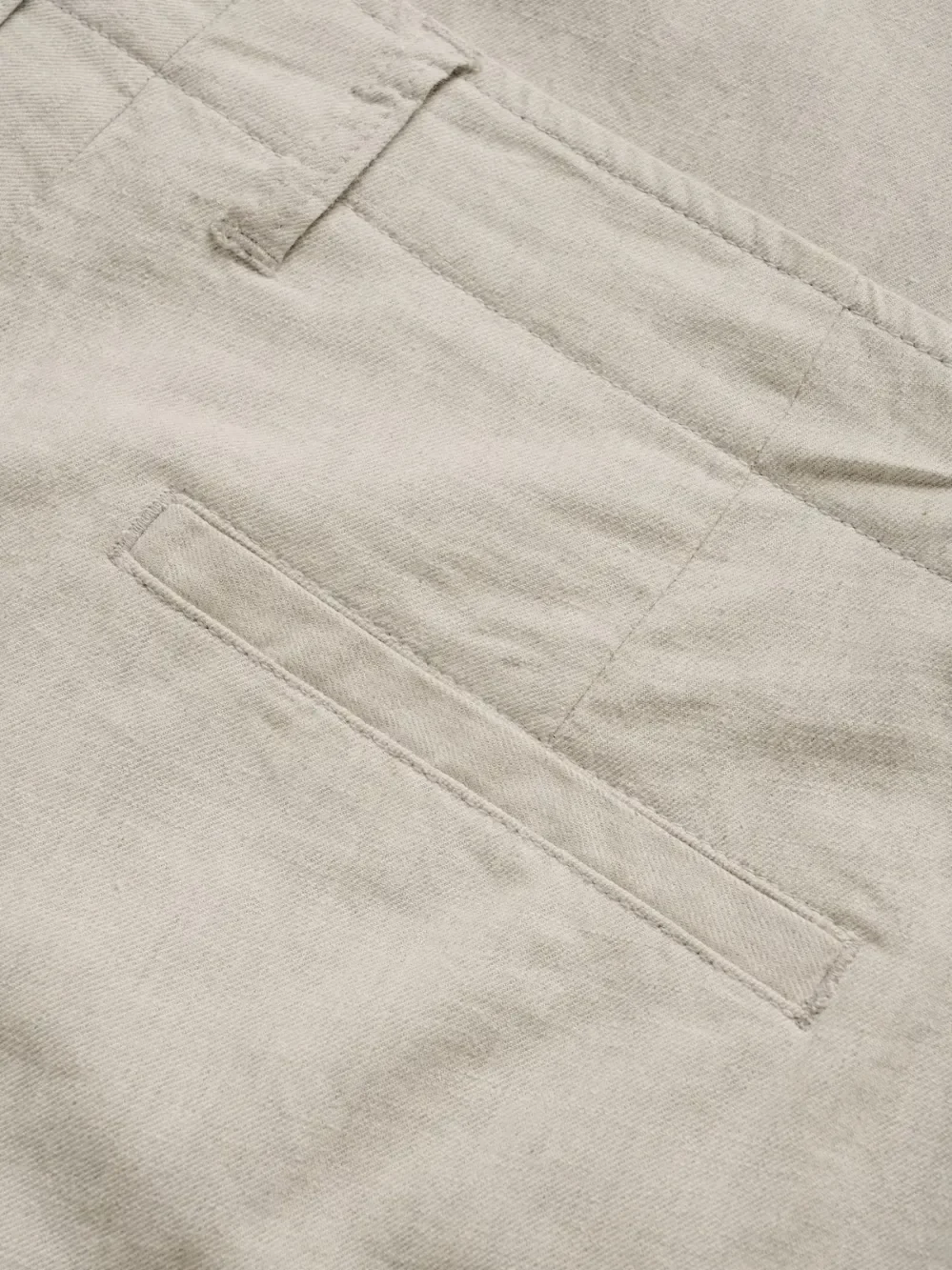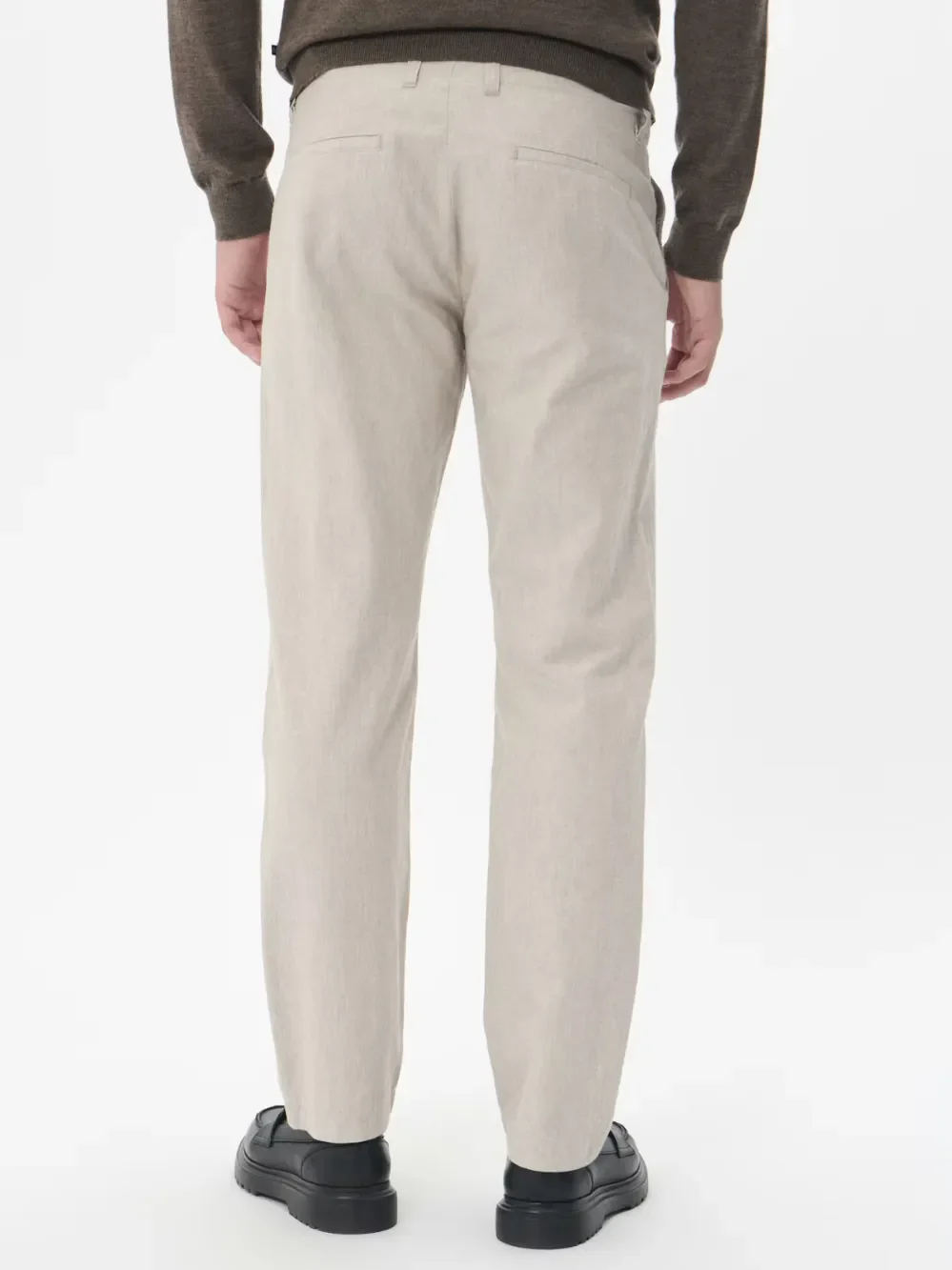 Bukse fra Matinique. Buksen har rette ben med stikklommer i sidene og beltehemper i linningen. Lukkes med knapp og glidelås. En lett og luftig bukse som er laget av bomull og lin. Perfekt til hverdag og litt finere anledninger.