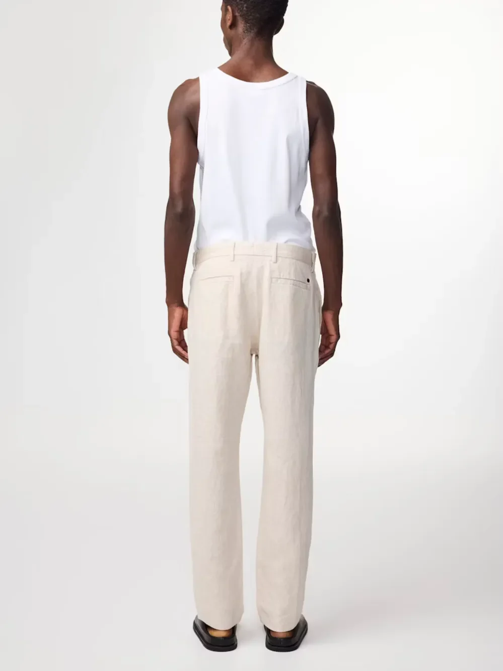 Lin bukser fra NN.07. Buksene kommer med rette ben, stikklommer i sidene og belte hemper i liningen. Middels høy på livet. Den perfekte lin buksen, den kan lett styles både opp og ned. Kommer i tre lengder og flere farger.