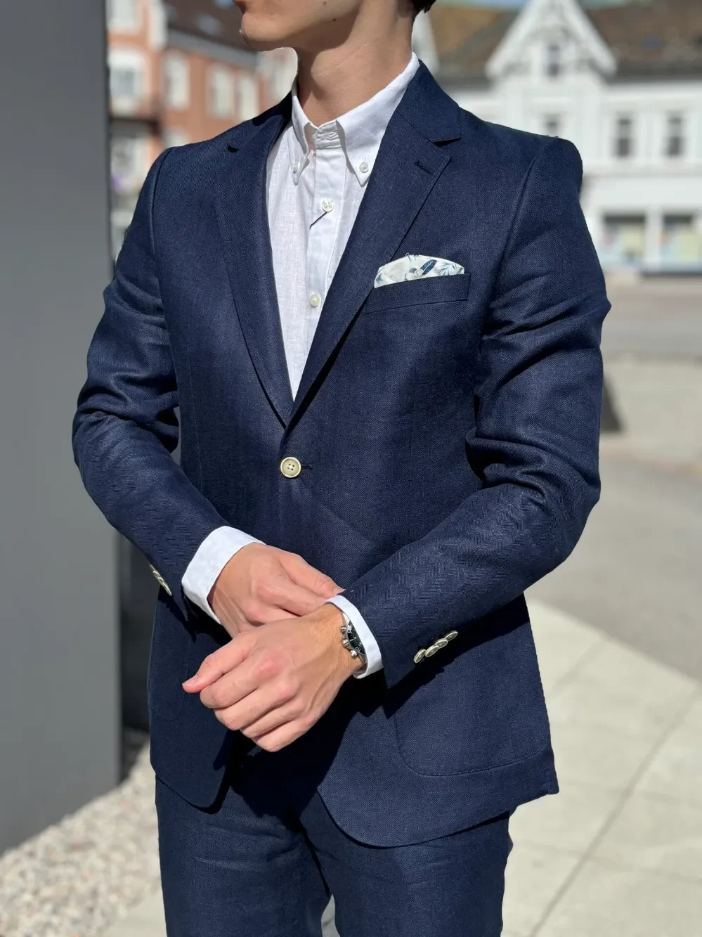 Lin blazer fra Lacrosse. Blazeren kommer med normale slag og er enkeltspent. Lyse knapper i front og på mansjettene som gir en fin kontrast. Normal passform. Perfekt for både formelle og uformelle anledninger. Den lette kvaliteten gjør den ideell for varmere dager, samtidig som den gir et sofistikert preg. Matches med Elba lin bukse for en komplett dress. Kommer i flere farger.
