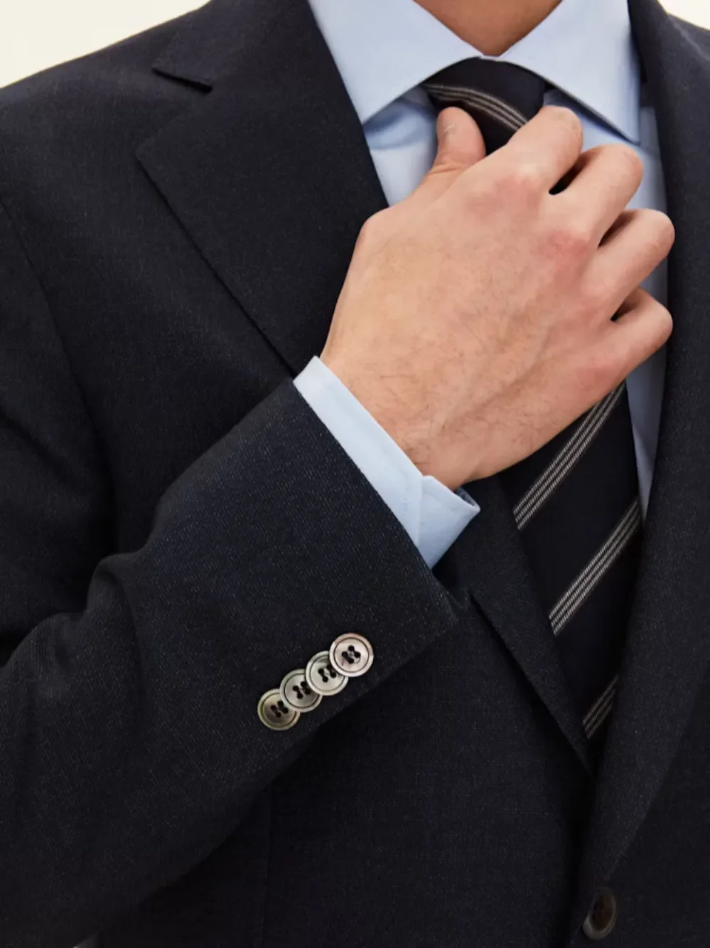 Blazer fra Oscar Jacobson. Blazeren er enkeltspent og har en normal passform. Smal slag med lommeklaff i front. Fin å bruke til en jeans, eller å kombinere med tilhørende dressbukse for en mer formell look og en causal dress. Perfekt å bruke til festsesongen.