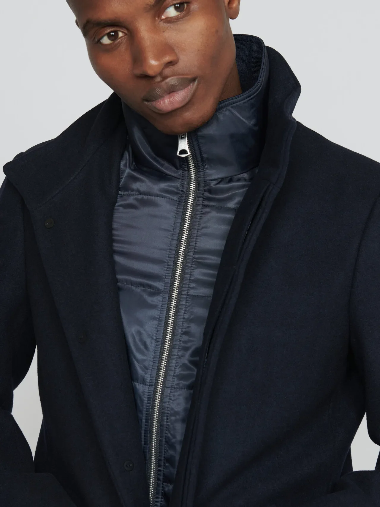 Ullfrakk fra Matinique. Frakken har en normal passform med fin lengde til rett over rumpen. Kommer med skjulte knapper. Avtagbar vest - noe som gir den et ekstra lag varme på kaldere dager. Frakken kan du fint bruke både til dressen eller til hverdags. Kommer i flere farger.