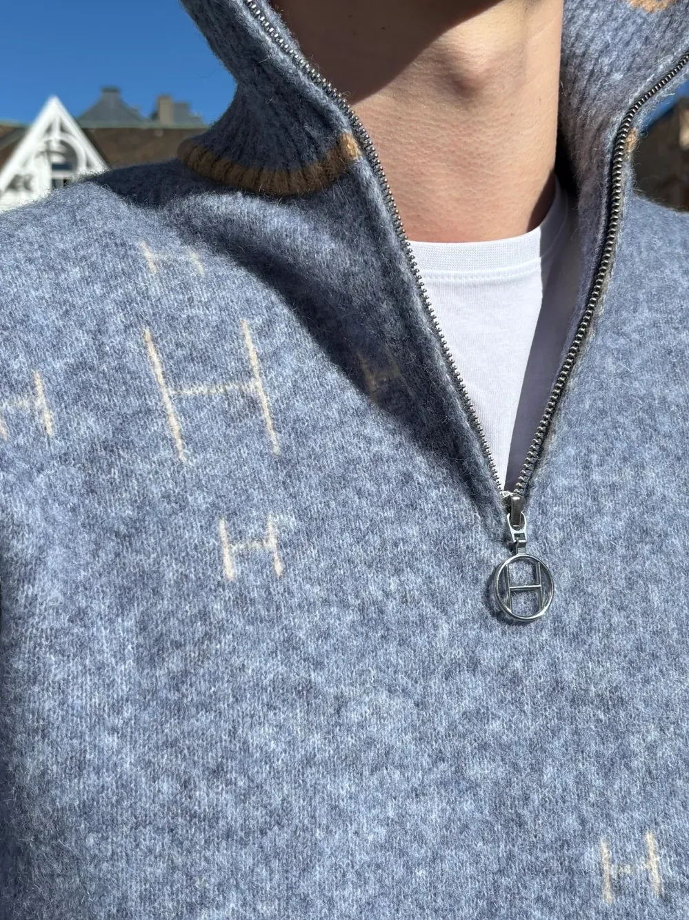 Genser fra HÈST. Genseren kommer med en half zip, høy krage og er i en deilig tykk ull. Vid passform.