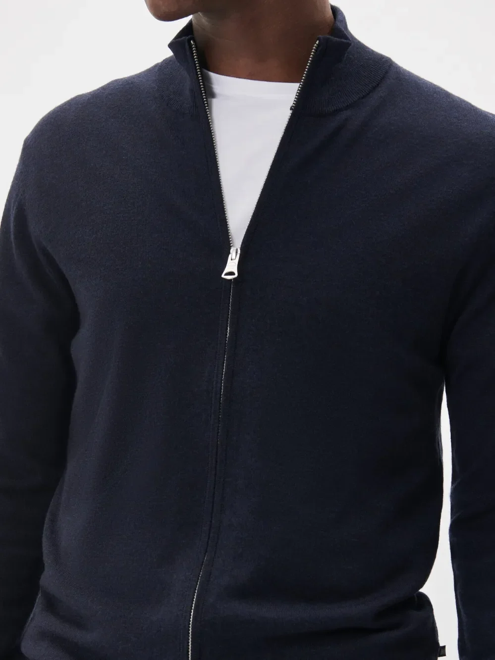 Cardigan fra Matinique. Cardiganen kommer med en full zip, ribstrikk nederst, på mansjettene og er i myk merinoull. Perfekt cardigan som er like fin inni en blazer som den er alene. Kommer i flere farger.