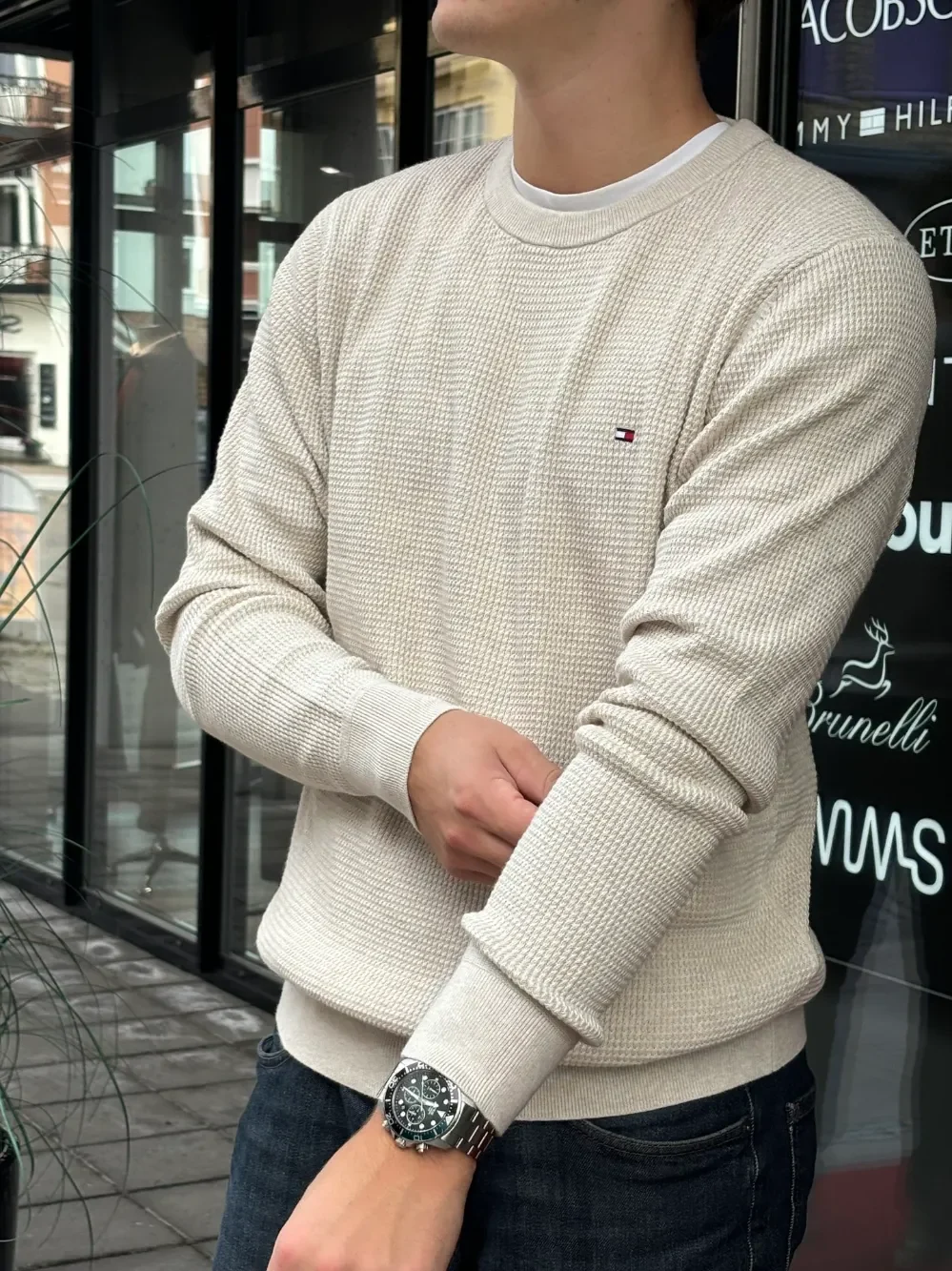 Genser fra Tommy Hilfiger. Genseren kommer med en rund hals, litt struktur og en diskre logo. Ideell for både hverdagsbruk og litt finere anledninger. Kommer i flere farger.