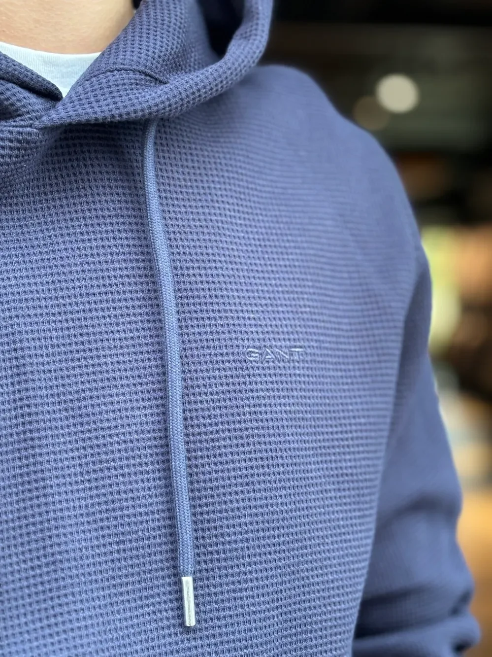 Hettegenser fra Gant. Genseren kommer med hette, ribbstrikk nederst og på mansjettene. Nydelig vaffelstoff på utsiden som gir genseren et litt penere utrykk. Normal passform. Kommer i flere farger.