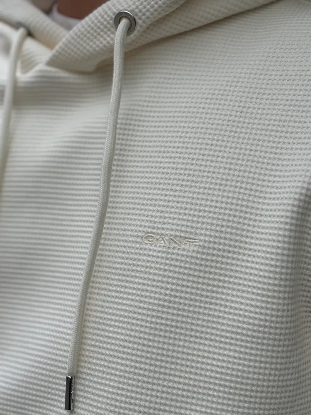 Hettegenser fra Gant. Genseren kommer med hette, ribbstrikk nederst og på mansjettene. Nydelig vaffelstoff på utsiden som gir genseren et litt penere utrykk. Normal passform. Kommer i flere farger.