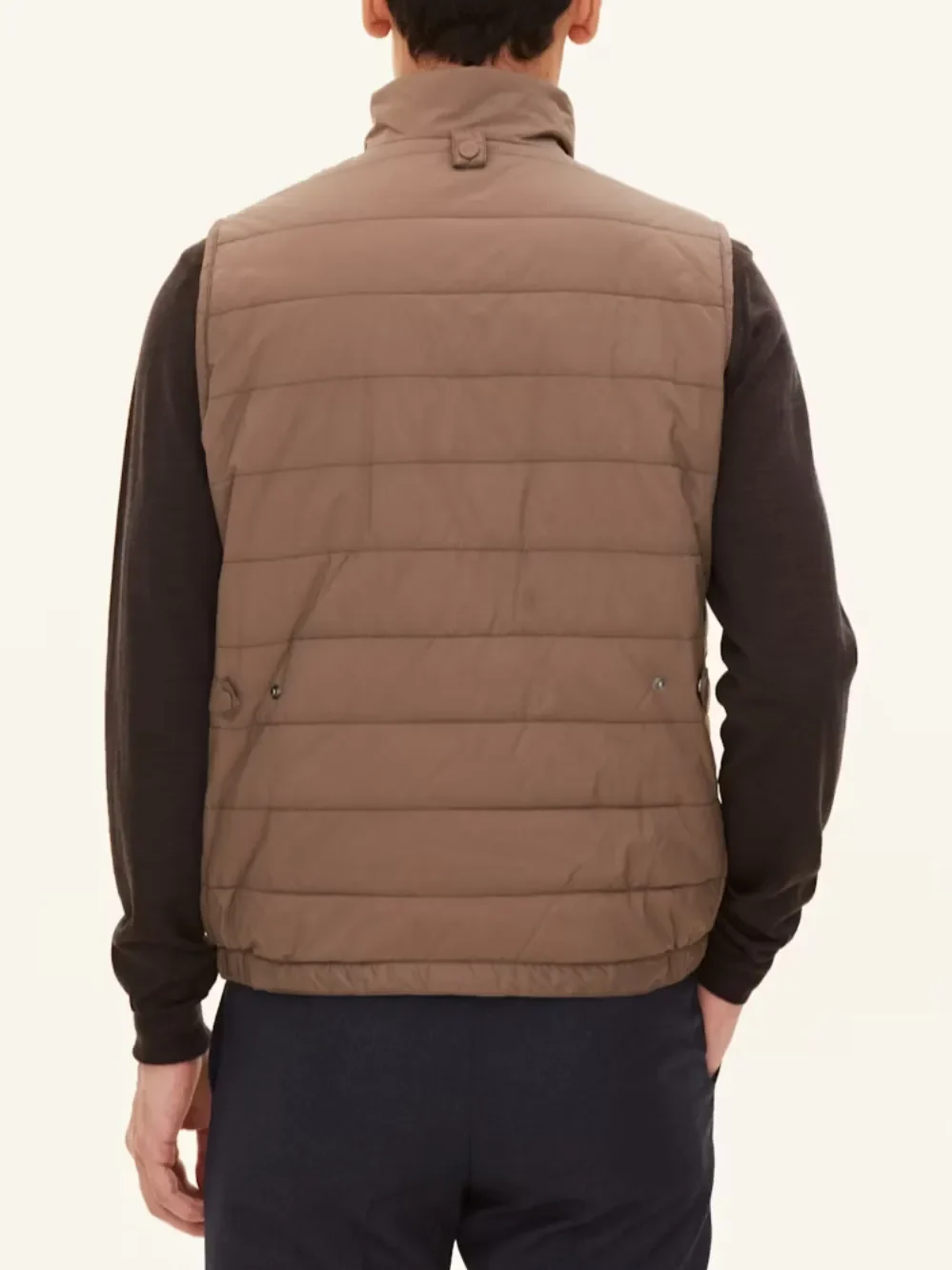 Vest fra Oscar Jacobson. Vesten kommer med en toveis glidelås og kan strammes inn i ryggen. Perfekt over en genser eller inni en blazer. Normal passform.