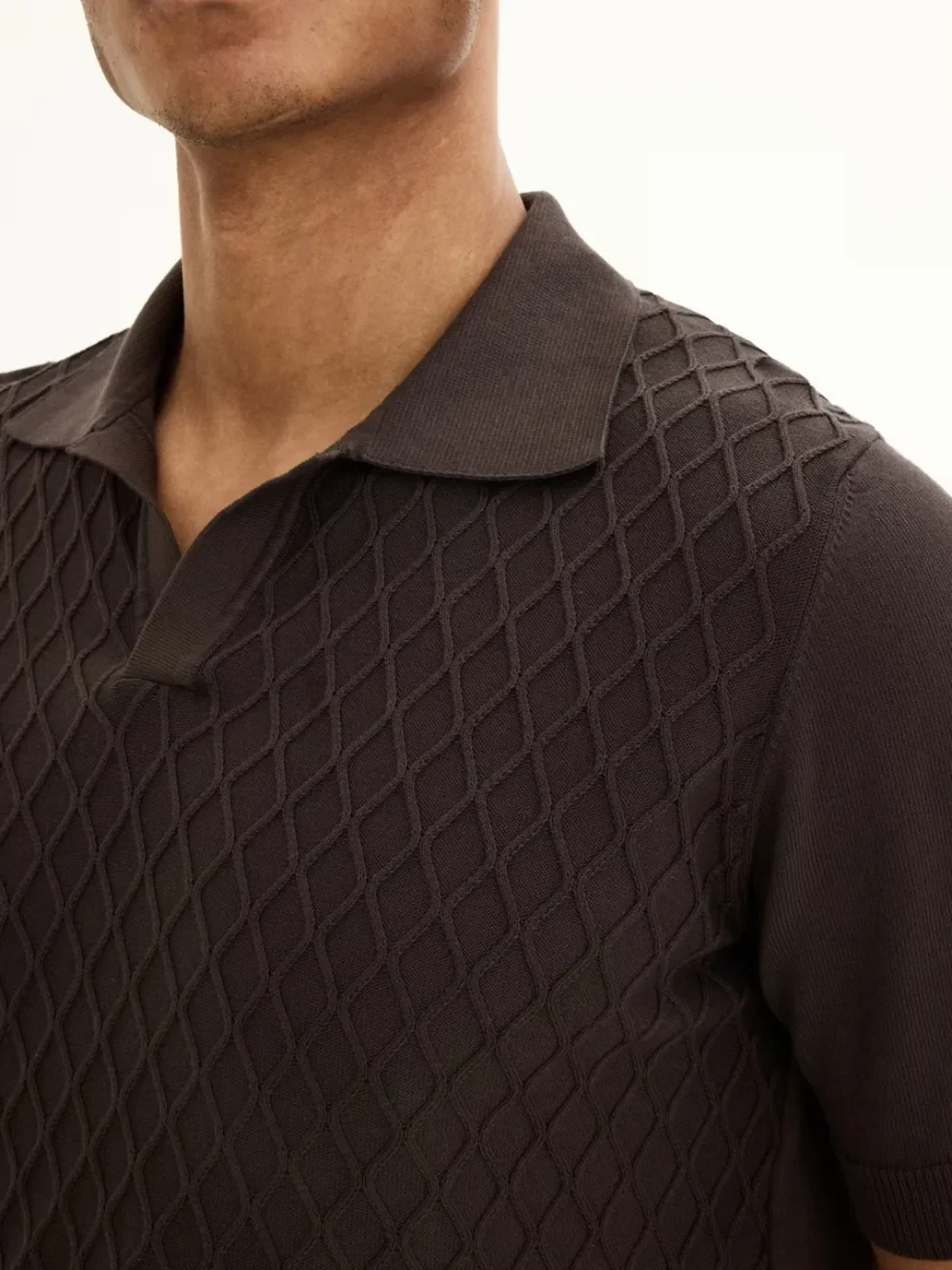 T-skjorte pique fra Oscar Jacobson. Piqueen har korte ermer og en knappeløs krage. Ribbstrikk på nederkanten og rundt ermene. Kommer i flere farger.
