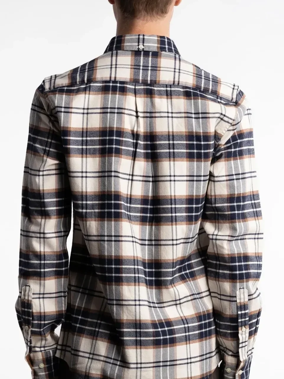 Flanellskjorte fra Barbour. Skjorten kommer med en buton-down krage, lomme på brystet og en behagelig passform. Perfekt hverdagsskjorte enten om du bruker den alene eller med en t-skjorte inni.