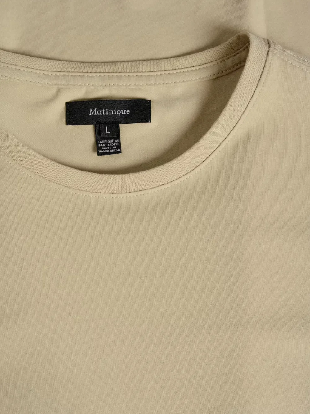 T-skjorte fra Matinique. T-skjorten kommer i en superdeilig bomullskvalitet som er helt nydelig å ha på seg. Rund hals, rett passform og korte ermer. Fin å bruke under gensere og skjorter, men også fin å bruke alene. Kommer i flere farger.
