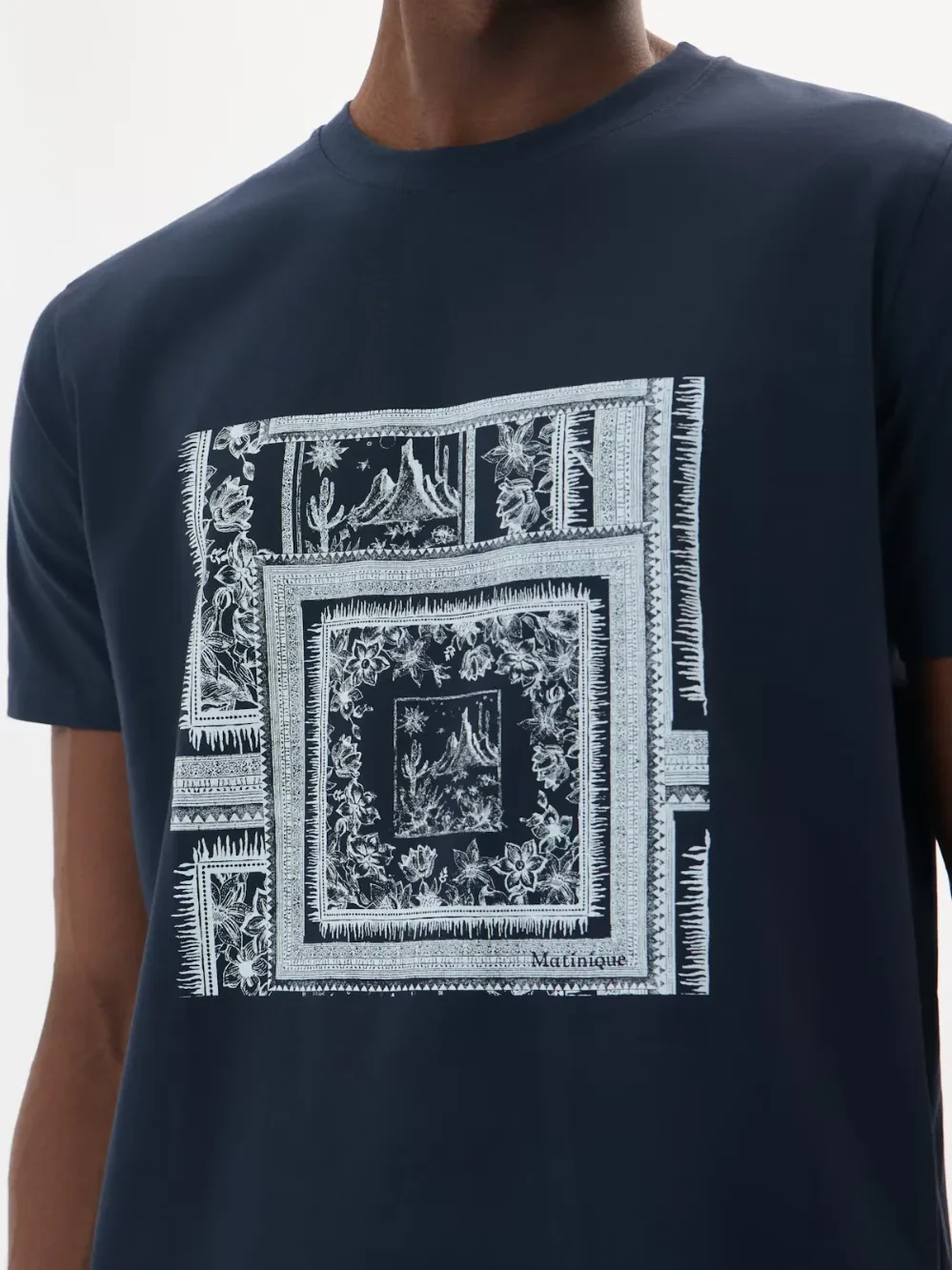 T-skjorte fra Matinique. Super kul t-skjorte med en rund hals og print på brystet. Fin alene eller inni en skjorte. Kommer i flere farger.